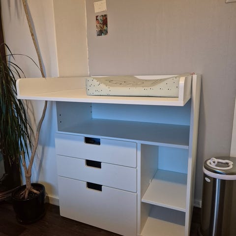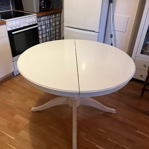 Gir bort IKEA stellebord. Litt fuktskade på ene benet (se bildet - nederst til venstre) ellers i pen stand. Førstemann til mølla!