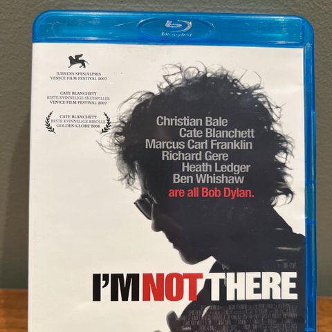 I'm Not There Blu-ray film med skuespillere som Christian Bale, Cate Blanchett, Heath Ledger, Richard Gere, Julianne Moore og Kris Kristofferson. Filmen handler om ulike sider av Bob Dylans liv og karriere, regissert av Todd Haynes.