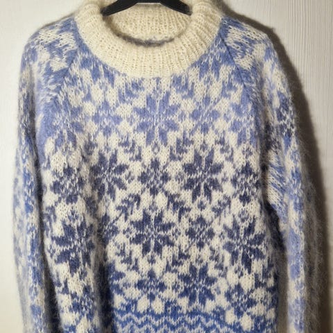Helt ny og ubrukt Carly genser, strikket i original garn. Størrelse L. Den vart kjøpt på finn.no men vart litt for stor for oss dessverre. Størrelsen er nok meir L mot XL!
