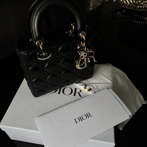 Mini Lady D-joy bag i hvit, helt ubrukt med absolutt ingen bruksmerker. Den har fortsatt plast og annen beskyttelse på.