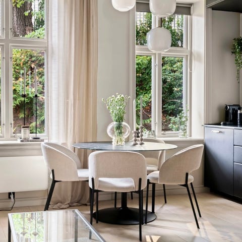 Veldig praktisk spisebord til mindre leiligheter. Tar lite plass, og kan enkelt vippes ut og gjøres større (har dessverre ikke nøyaktig mål når den blir større). Du trenger ingen ekstra plate, alt er bygd inn i bordet og du vipper det enkelt ut for å gjøre det større.