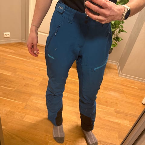 Solide glidelåser med knapper nederst på benet gjør det enkelt å få tilpasse buksen perfekt rundt støvlene. To romslige lommer for diverse utstyr er praktisk plassert på hvert lår. I en av dem er det en liten lomme i telefonformat som du kan bruke til å holde orden på småting.