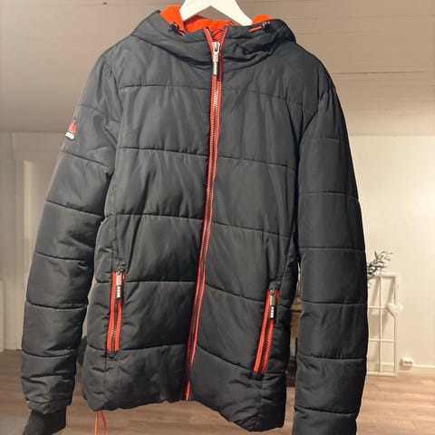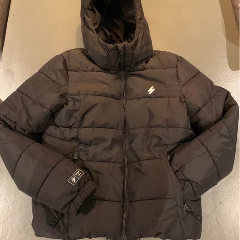 Superdry Sports Puffer Series jakke i beige farge, størrelse L, laget av polyester. Jakken er designet for menn og egner seg til utendørs bruk. Kan sendes på kjøpers regning.