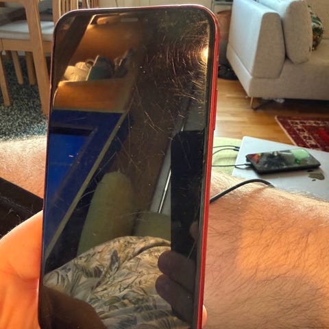 Det er et lite "hakk" i den ene linsen, som vist på bilde. Men det er ikk noe som går utover kamerakvaliteten.