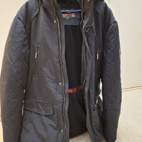 Varm vinterjakke av stoff teddy (må helst ikke brukes i snøvær eller regnvær)