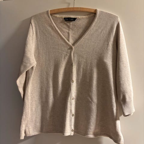 Soyaconcept Cardigan i beige farge, størrelse XXL. Laget av 75% viskose og 25% nylon.
