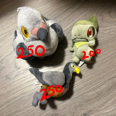 Pokémon myke bamseleker i ulike figurer som Pikachu, Squirtle og andre. Egnet for barn, laget i mykt materiale.