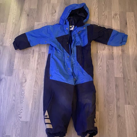 Vinterdress fra Skogstad, størrelse 110. Brukt av ett barn, mye bruk igjen. Innerdress som kan tas av/på med glidelås og knapper, slik at dressen kan brukes også utover våren. I god stand, bortsett fra ene knappen er løsnet foran. Fant ekstra knapp, og et knappesett fra annen dress som passer, som jeg legger ved.