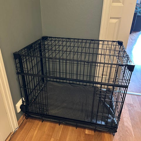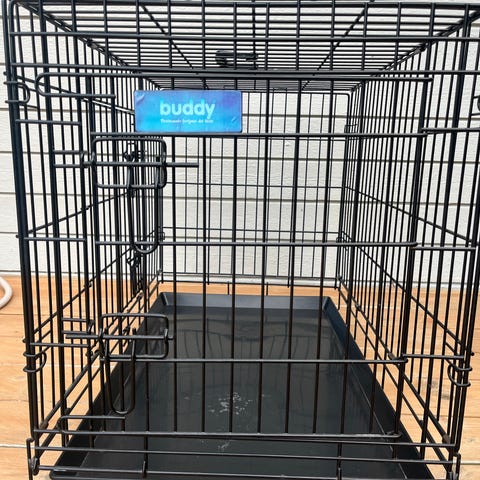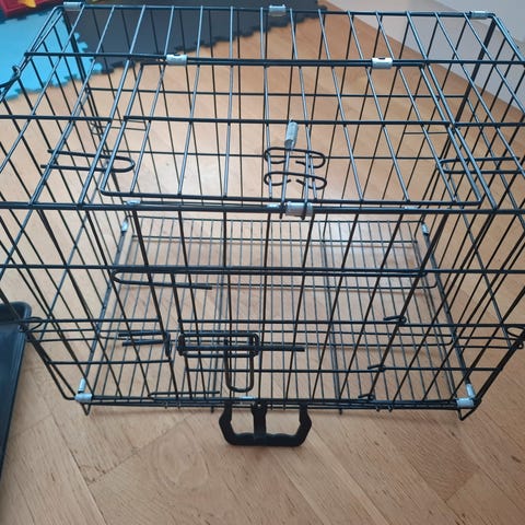 Buddy hundebur i metall med en svart finish. . Det har en enkel låsemekanisme og en uttakbar bunn for enkel rengjøring. Passer til bruk både hjemme og på reise.