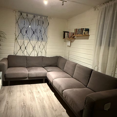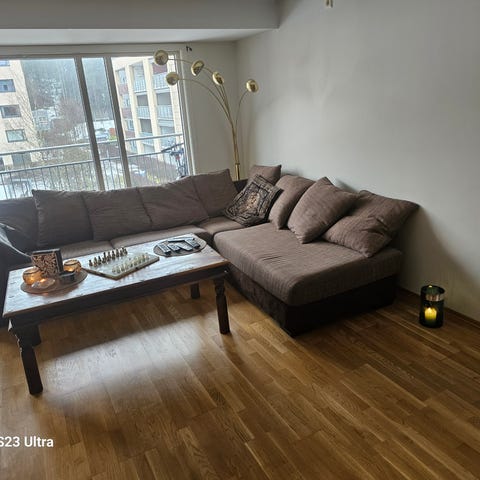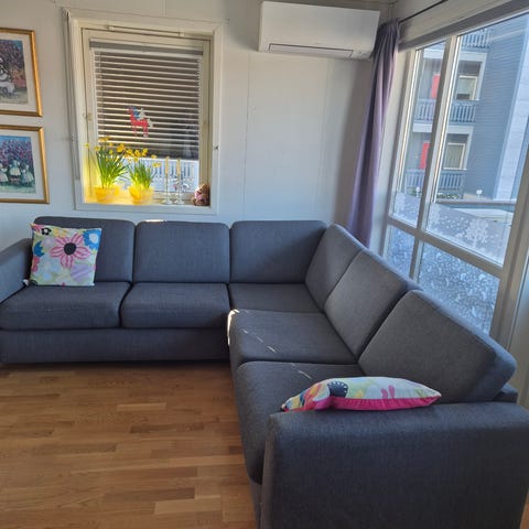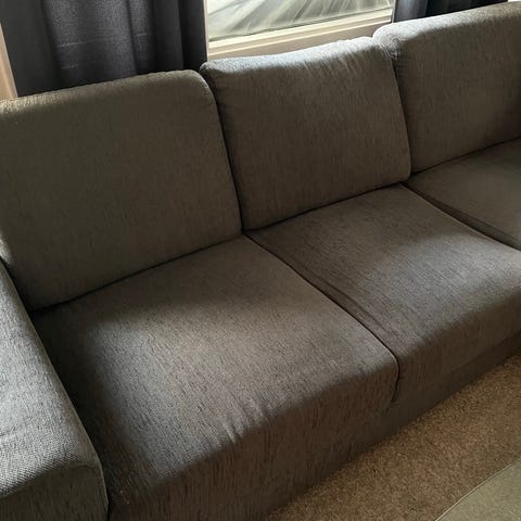 Brukt hjørnesofa uten skader gis bort. Kan deles i tre deler.
