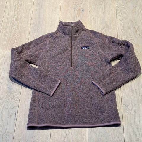Retro Patagonia pile I fargen brun med rosa kanter.