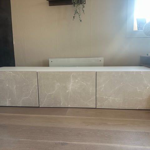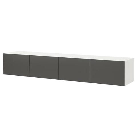 TV-benk med dører, hvitbeiset eikemønster/Lappviken hvitbeiset eikemønster, 240x42x38 cm