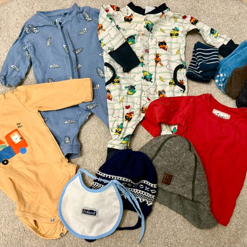Pent brukte pysjer i str 56-62 (en i 50, og 2 i størrelse 50/56)