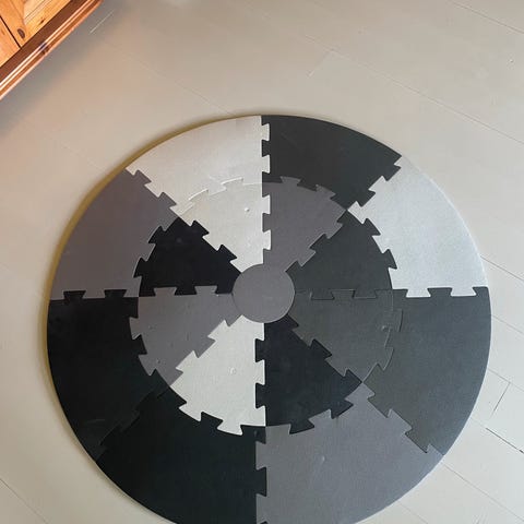 Yngri lekematte gir barnet en myk, trygg og morsom lekeplass. Den består av ni puslebrikker laget av EVA-skum uten skadelige stoffer. Matten beskytter gulvet og gir en komfortabel flate for lek, kryping og utforsking.