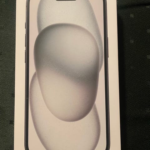 Apple iPhone 15 mobiltelefon med 128 GB lagringskapasitet. Kjøpt i Juli, brukt frem til desember. Enheten kommer i original emballasje.