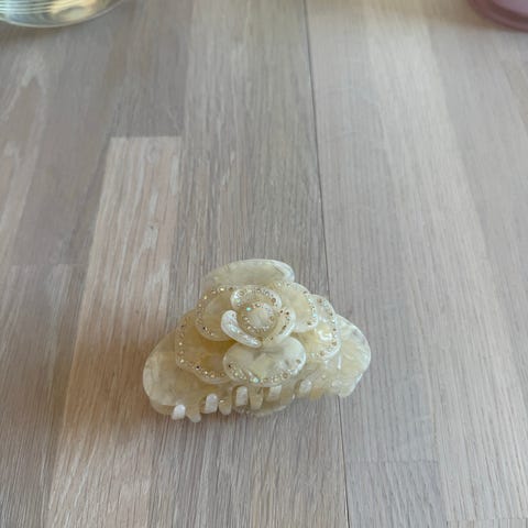 Rosa hårklype pent brukt selges. Den er bygget opp med små streker (se bilde).