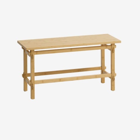 IKEA RÅGRUND benk laget i bambus med mål 70x37 cm. Benken har en enkel og funksjonell design med en ekstra hylle under for oppbevaring. Egnet for bruk i ulike rom som bad eller entré.