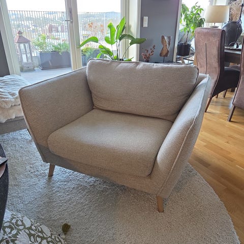 2 stk lounge stoler i fargen beige med svarte bein.