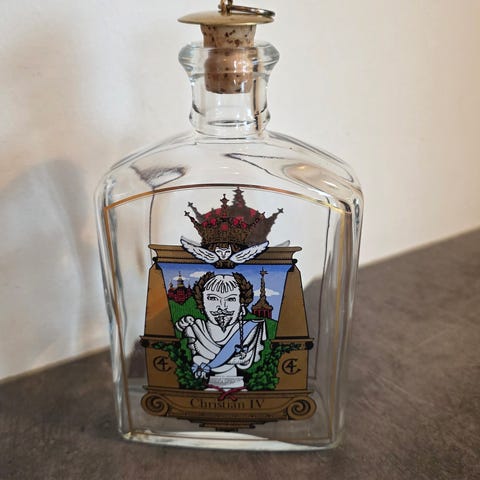 Denne flotte karaffelen / brennevinflasken / likør flasken fra Holmegaard har aldri vært brukt, kun stått til pynt.