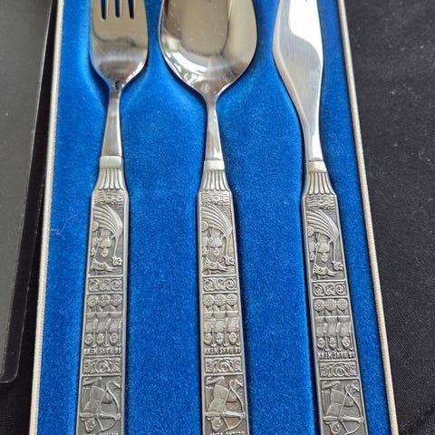 Transjerings sett / tranchersett og kakespade i Kongetinn fra Hardanger.