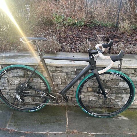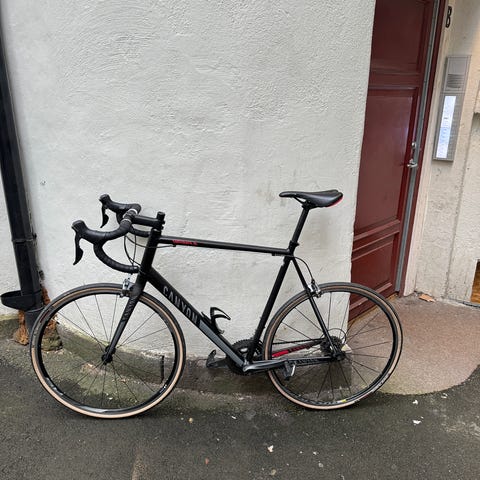 Lettvekt alu banesykkel, karbon gaffel. Muligheter for bremsmontering fremme hvis du tenker å bruke den i byen eller til pubben. Ca. 8 kg med gjennomsnittlig hjulsett