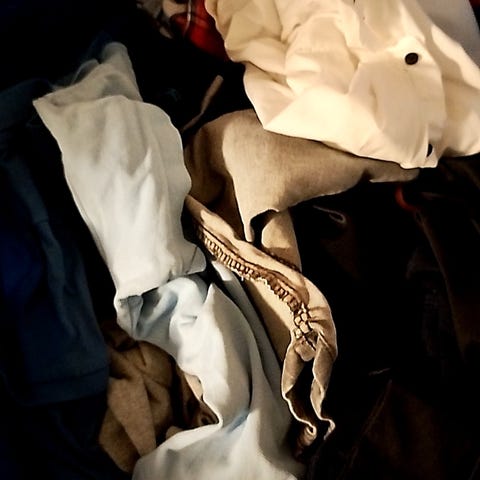 Hei! Har fyllet en pose med barneklær i størrelse som tilsvarer ca 8 år jente med størrelsen. Inkluderer regnsett (jakke og bukser), bukser (collegebukser med «sleng»), gymklær, noen t-skjorter. Må hentes.
