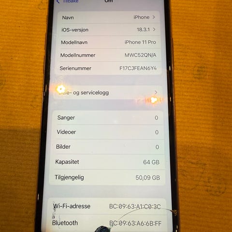 Selger en iPhone 11 Pro med ødelagt skjerm. Skjermen viser linjer og fungerer ikke som den skal (se bilder).