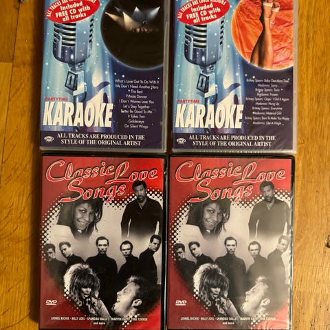 Karaoke-DVD med kjente kjærlighetssanger fremført i stil med originale artister. Inneholder både full video eller blå bakgrunn, samt guide vocal-alternativ. Spiller på alle vanlige DVD-spillere og passer perfekt til hjemmebruk eller fest.