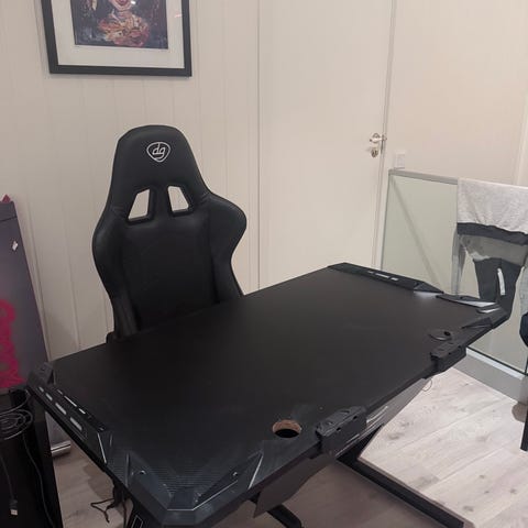 2 like gamingpulter fra IKEA. Har bruksmerker og den ene pulten mangler en kopp.