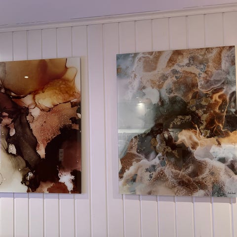 Glassbilde av Linda Skaret. kjøpt på Kremmerhuset ca 3 år siden. Mål: 80cm x 100cm.