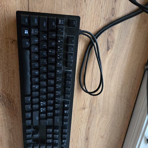Noe år gammelt men ekstremt lite brukt da jeg har spilt på konsoll. Alt følger med f.eks. loddene til musen og gaming knapper til tastaturet(1234WASDQER) verktøy til å ta av disse følger også med