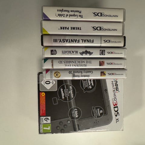 Nintendo 3DS bærbar spillkonsoll i rød farge. Enheten har doble skjermer, inkludert en berøringsskjerm, og tradisjonelle kontrollknapper for spill. Designet for bærbar bruk og kompatibel med Nintendo 3DS-spill. Gjerne kom med bud❤️