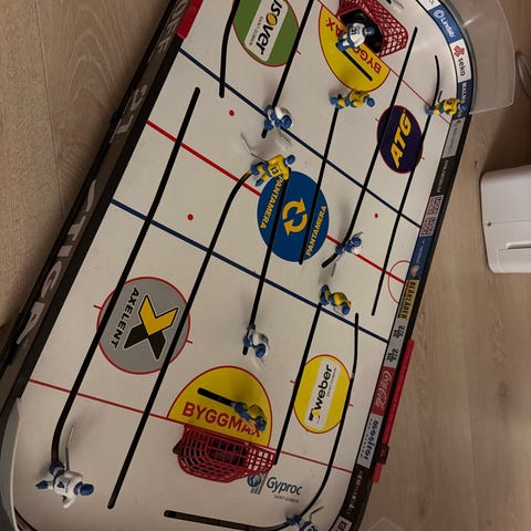 Stiga Play Off 21 bordhockeyspill med spilleflate som etterligner en ishockeybane. Inkluderer spillere og puck, samt fire festeclips for stabilitet under spilling. Egnet for innendørs bruk og passer for flere spillere.