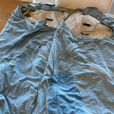 Vognpose Voksi Carry i fargen dusty green. Multi pose både til å bære babyen i (plate medfølger). Kan også brukes i vogn som vognpose.