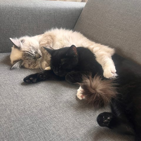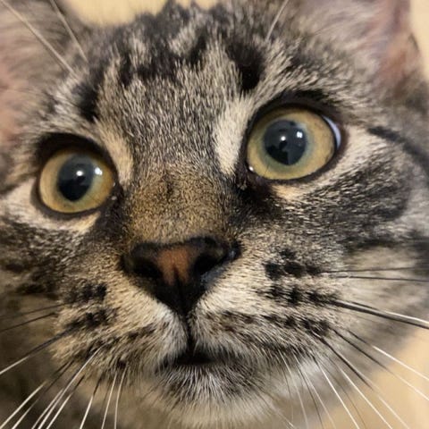 Katten er en 1,5 år gammel hunnkatt med langt, mykt hår. Hun er kosete, ikke slippet, og vaksinert med to vaksiner. Hun ligner litt på en sibirkatt