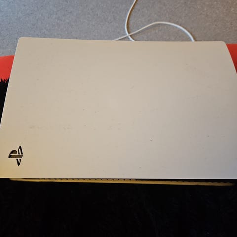 PlayStation 5 spillkonsoll med trådløs kontroller. Konsollen har et moderne design i hvitt og svart, og støtter høyoppløselig grafikk og rask lastetid. Passer for bruk med PlayStation-spill og digitale medier. Kjøre ganske bra, lite lyd og blir ikke fort varme. Noe merker rundt etter men ikke noen skader så påvirker konsollen. Ta kontakt.