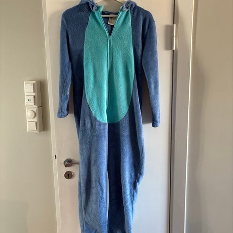 Cookie Monster kosedrakt i blå farge, laget av mykt og behagelig materiale. Unisex design som passer til voksne, størrelse XL. Har hette med øyne og knappelukking foran. Turkis. Pent brukt en gang. Reserverer kun ved betaling. Sender gjerne.