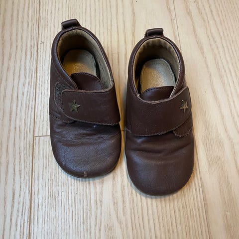 Bisgaard barnesko i størrelse 24, unisex. Skoene har en blå farge og er laget i et tekstilmateriale med borrelåsfeste for enkel på- og avtakning.