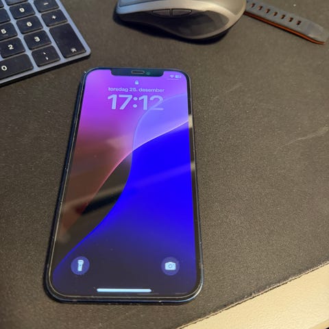 Apple iPhone 12 med 128 GB lagringskapasitet i hvit farge.