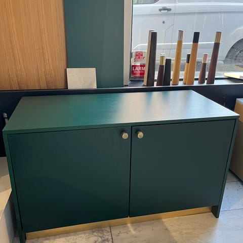 Elegant grønt sidebord i askefiner messingdetaljer