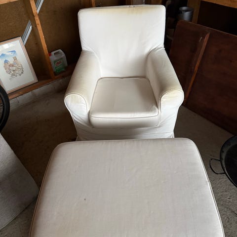 6stk stoler gis bort. Slitt skaitrekk, men helt fine med overtrekk som følger med. Kjøpt på Skeidar. Må hentes.