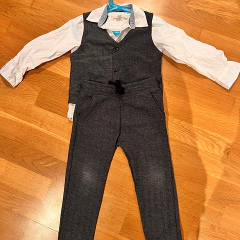 Fin klær til gutt hvit t-skjorte,bukse og vest med glidelås blå farge