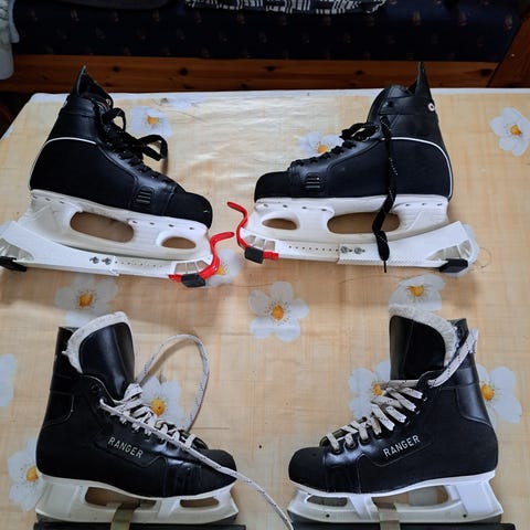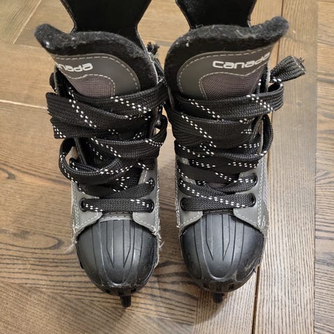 Canadisn Ishockey Skøyter for barn i størrelse 33. Skøytene er svarte og egnet for ishockey. Skøytene er normalt brukt og i god stand.
