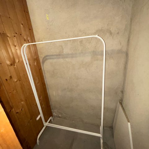 Selger to pent brukt IKEA RIGGA klesstativ i hvitt. Dette er svært praktiske stativ som fungerer like godt i gangen som på soverommet eller vaskerommet.