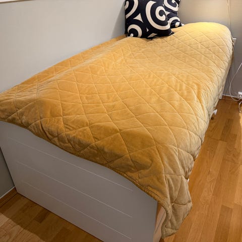 En av veldig mange planker til sengebunnen er knukket. Ubetydelig skade.
