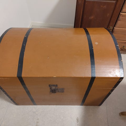 Gir bort denne kista/lekekasse (?). Tidligere brukt til oppbevaring av leker. Håndtaket på venstreside er løsnet fra ene siden, men henger fremdeles på. Ellers er kista like hel og fin 🤗