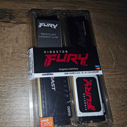 Kingston Fury Beast DDR5 RAM med totalt 64GB kapasitet fordelt på 2 moduler à 32GB.
