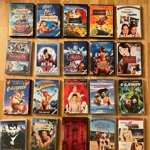 Samling av Astrid Lindgren og andre barnefilmer på VHS.
