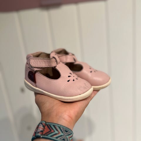 Selger et par nydelige babysko i lys rosa mykt skinn fra "El Fant". Lite og pent brukt, som nye!