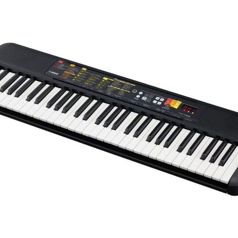 Keyboard fra yamaha psr f51, følger med strømadapter, stativ og noteholder. Fungerer som den skal, og ingen mangler. Ungene har satt på tape på noen av tangentene, men dette kan vaskes vekk hvis man bare tar seg bryet..:)